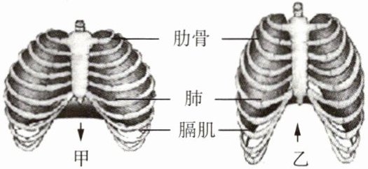 B.图甲动作发生时,肋间肌与膈肌都在收缩