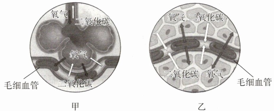 (3)下列两幅图中表示肺泡与血液间气体交换的是______,表示血液和组织细胞间气体交换的是______。