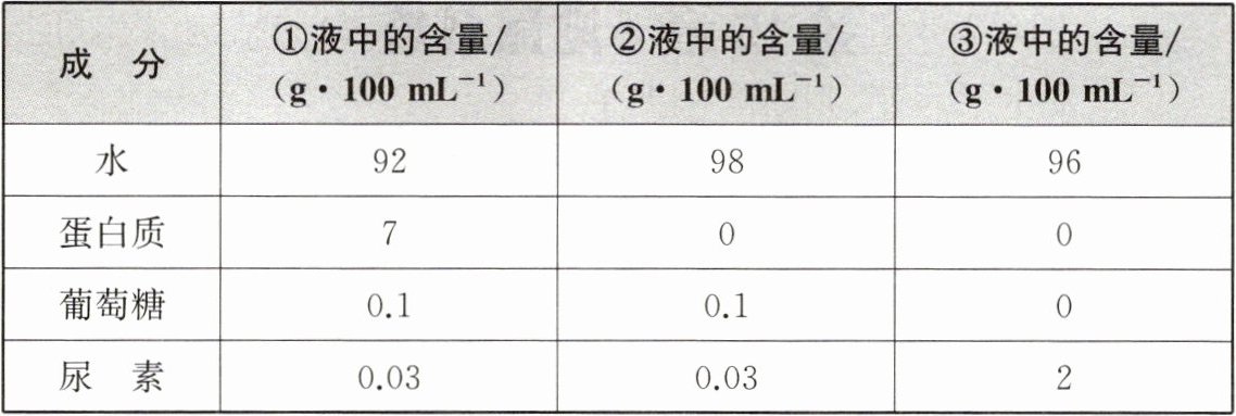 | 成 分 | ①液中的含量$/(g·100mL⁻^1) $| ②液中的含量$/(g·100mL⁻^1) $| ③液中的含量$/(g·100mL⁻^1) $|