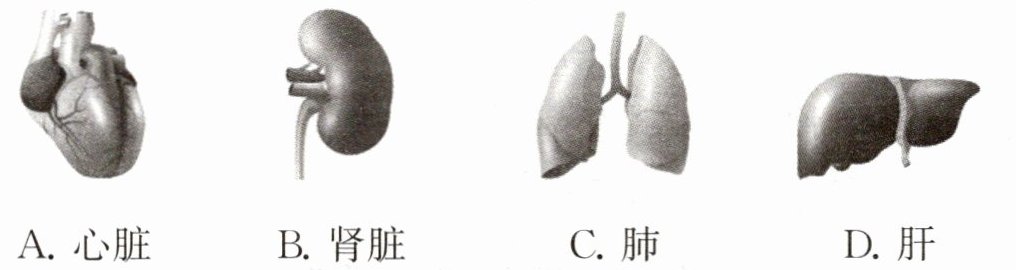 A. 心脏 B. 肾脏 C. 肺 D. 肝