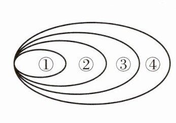 2.(单选题)构建生物概念模型是学习生物学的方法之一,下页图用不同椭圆表示生物概念间的包含关系,其中①②③④依次代表相关概念,下列各组结构名称符合该概念图的是 ( )