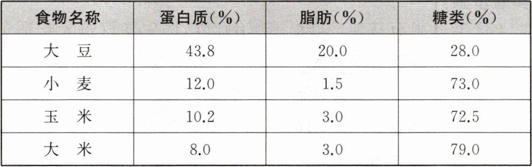 (3)(单选题)从表中选两种食物搭配,蛋白质含量最为丰富的一组是 ( )