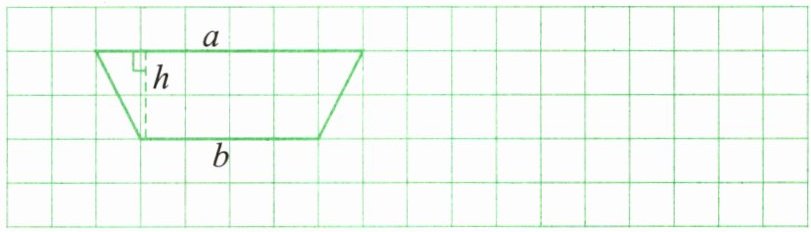 (1) 在下面的方格纸上的梯形旁画一个和它完全相同的梯形,使这两个梯形拼成一个平行四边形,拼成的平行四边形的底用字母表示是( ),高用字母表示是( ),这个平行四边形的面积是( ),所以梯形的面积是( )。