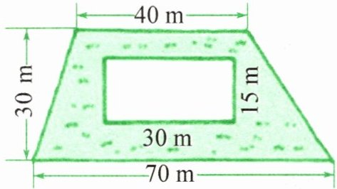 2. 如图,一块梯形地中间有一个长方形游泳池,其余是草地,草地的面积是多少平方米?