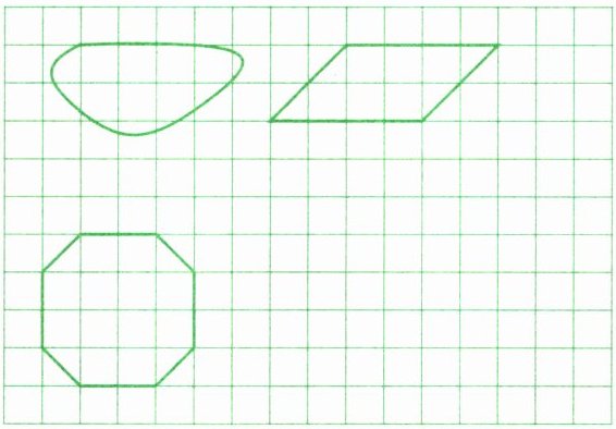 (1)左上图的面积大约是( )平方厘米;右上平行四边形的面积是( )平方厘米;左下八边形的面积是( )平方厘米。