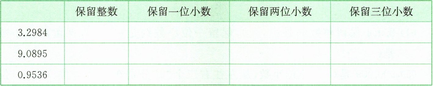 | | 保留整数 | 保留一位小数 | 保留两位小数 | 保留三位小数 |