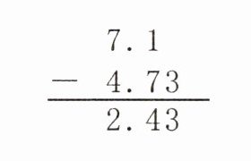 $\begin{array}{r} 7.1\\ -4.73\\ \hline 2.43\end{array} $