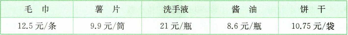 | 毛巾 | 薯片 | 洗手液 | 酱油 | 饼干 |