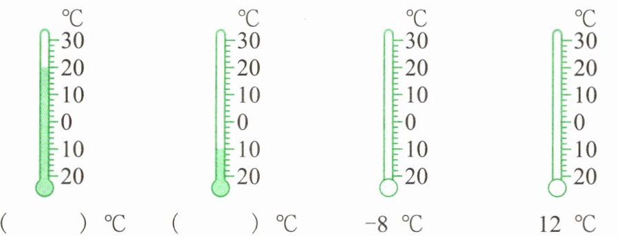 写出左边两个温度计指示的温度,再在右边两个温度计上表示出相应的温度。