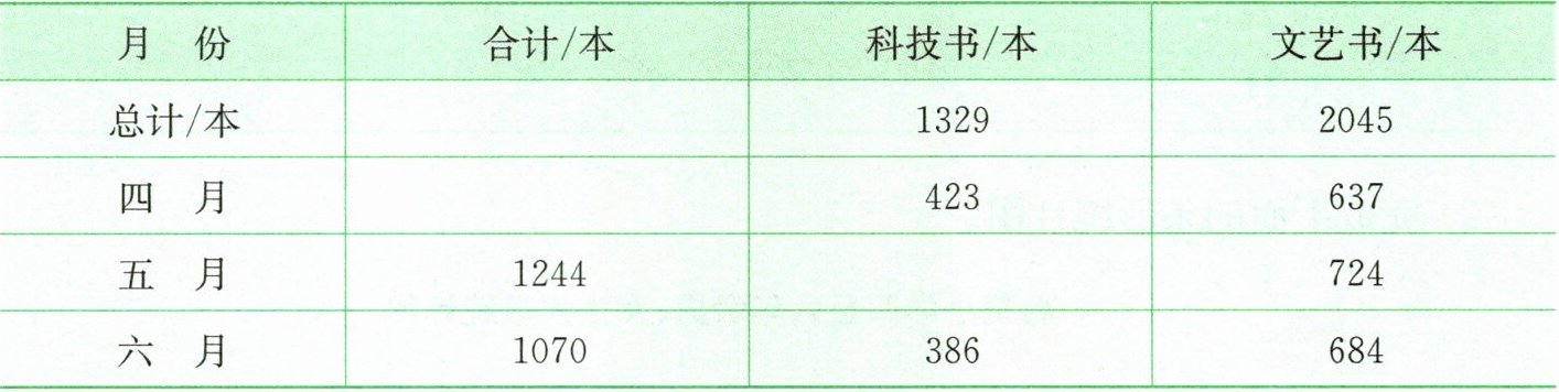 (3)第二季度平均每月销售科技书( )本。