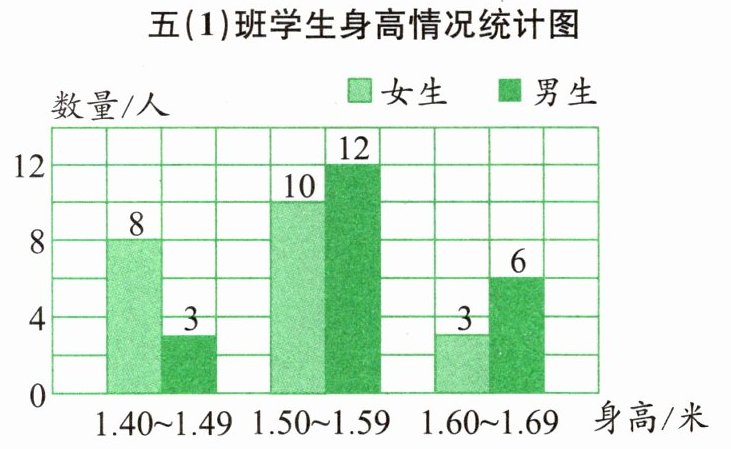 2. 五(1)班学生的身高情况分三段统计,结果如下图。