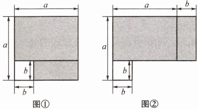 8. 如图①是边长为 $a$ 的正方形中有一个边长为 $b(b < a)$ 的小正方形。如图②是由图①中的阴影部分拼成的一个长方形。