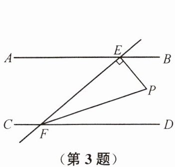 3. 如图,$AB// CD$,$EF$ 与 $AB$,$CD$ 分别相交于点 $E$,$F$,$EP\perp EF$,与$\angle EFD$的平分线 $FP$ 相交于点 $P$,且$\angle BEP = 50^{\circ}$,则$\angle EPF$的度数为(
