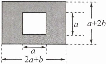 24. 公园内有一块长为$(2a + b)m$,宽为$(a + 2b)m$的长方形地块,如图。某市规划部门计划将阴影部分绿化,中间将修建一座雕像。