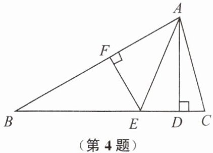 4. 如图,在$\triangle ABC$中,$AE$ 平分$\angle BAC$ 交 $BC$ 于点 $E$,过点 $A$ 作 $AD\perp BC$,垂足为 $D$,过点 $E$ 作 $EF\perp AB$,垂足为 $F$. 若$\angle B = 30^{\circ}$,$\angle AEF = 52^{\circ}$,则$\angle CAD$的度数为(
