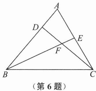 6. 如图,$D是AB$上一点,$E是AC$上一点,$BE$,$CD相交于点F$,$\angle A = 70^{\circ}$,若$\angle ACD = 20^{\circ}$,$\angle ABE = 25^{\circ}$,则$\angle BFC$的度数是(