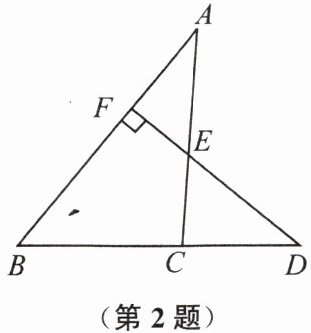 2. 如图,在$\triangle ABC$中,点$D在BC$的延长线上,过点$D作DF \perp AB于点F$,交$AC于点E$. 已知$\angle A = 33^{\circ}$,$\angle ECD = 85^{\circ}$,则$\angle D$的度数是(