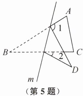5. 如图,已知在$\triangle ABC$中,$\angle B = 32^{\circ}$,将$\triangle ABC沿直线m$翻折,点$B落在点D$的位置,则$\angle 1 - \angle 2$的度数是(