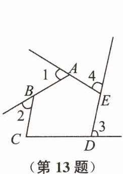 13. 如图,已知BC//DE,∠3= 78°,则∠1+∠2+∠3+∠4的度数是(