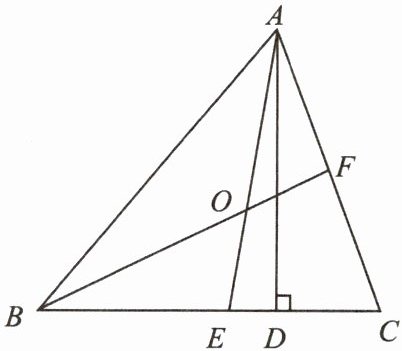 16. 如图,在△ABC中,AD是高,AE,BF是角平分线,它们相交于点O,∠C= 70°.