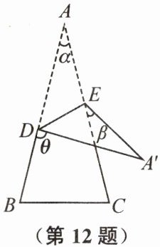 12. 如图,将一张三角形纸片ABC的一角折叠,使点A落在△ABC外的A'处,折痕为DE.如果∠A= α,∠CEA'= β,∠BDA'= θ,那么下列式子中正确的是(
