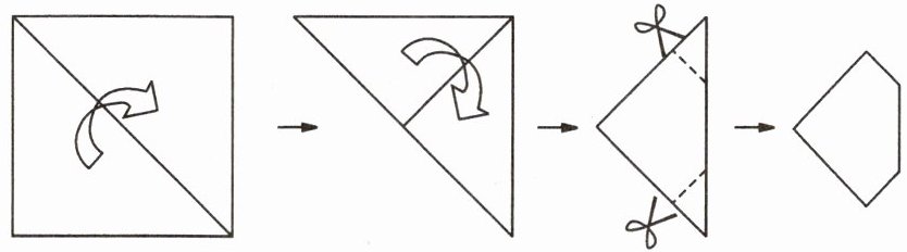 14. 把一张正方形纸片按如图所示的方法对折两次后剪去两个角,打开以后的形状是(