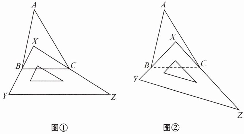 .(2)如图②,若△ABC的位置不变,改变直角三角板XYZ的位置,使直角三角板XYZ的两条直角边XY,XZ仍然分别经过点B,C,则∠ABX+∠ACX的度数是否变化?若变化,请举例说明;若不变化,请求出∠ABX+∠ACX的度数.