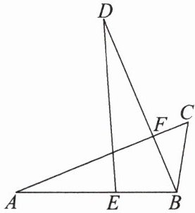 7. 如图, 已知△ABC≌△DEB, 点 E 在 AB 上, AC 与 BD 交于点 F, AB = 12.5, BC = 5, ∠C = 65°, ∠D = 20°. 求: