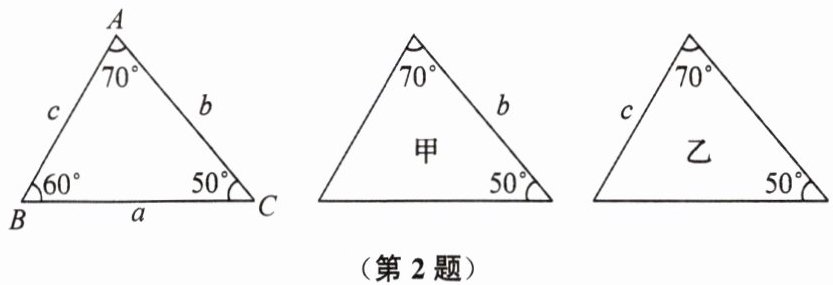 2. 如图,已知$\triangle ABC$三条边、三个角,则甲、乙两个三角形中,与$\triangle ABC$全等的图形是(