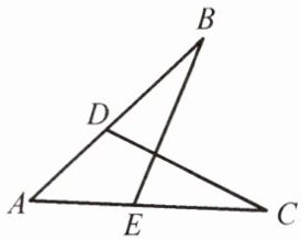 1. 如图,$AB = AC$,点$D$,$E分别在AB$,$AC$上,补充一个条件后,仍不能判定$\triangle ABE\cong\triangle ACD$的是(