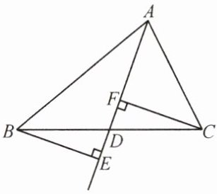 6. 如图,已知$BE\perp AD$,$CF\perp AD$,且$BE = CF$. 请你判断$AD是\triangle ABC$的中线还是角平分线,并说明你的理由.