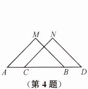 4. 如图,已知 MB= ND,∠MBA= ∠NDC,下列添加的条件中,不能用于判定△ABM≌△CDN 的是 (