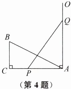 4. 如图,在 Rt△ABC 中,∠C= 90°,AC= 10,BC= 5,线段 PQ= AB,P,Q 两点分别在线段 AC 和过点 A 且垂直于 AC 的射线 AO 上运动,当 AP 的长为