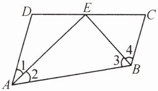 7. 如图,已知$ \angle 1 = \angle 2 $,$ AB = AD + BC $,$ E 是 CD $的中点。求证:$ BE 是 \angle ABC $的平分线。