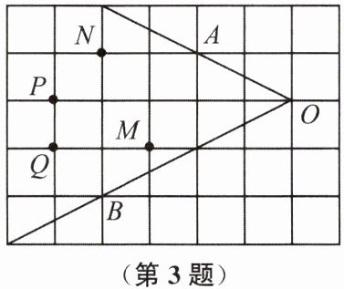 3. 如图,在正方形网格中,到 $ \angle AOB $ 两边距离相等的可能是(