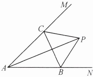 解:过点$P$作$PD\perp AM$于点$D$,$PE\perp BC$于点$E$,$PF\perp AN$于点$F$。
