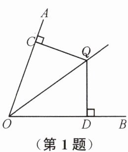 1. 如图, $ \angle AOB = 70^{\circ} $, $ QC \perp OA $ 于点 $ C $, $ QD \perp OB $ 于点 $ D $, 若 $ QC = QD $, 则 $ \angle AOQ = $