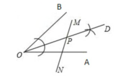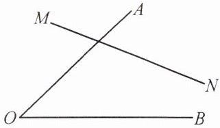 4. 如图,两条交叉的公路 $ OA $, $ OB $ 在 $ O $ 处相交,一条铁路 $ MN $ 穿过公路 $ OA $, 在铁路 $ MN $ 上的何处建一个货物中转站,能使这个中转站到两条交叉公路 $ OA $, $ OB $ 的距离相等? 请在图上画出这个货物中转站的位置.