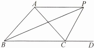 4. 如图, $ \triangle ABC $ 的外角 $ \angle ACD $ 的平分线 $ CP $ 与内角 $ \angle ABC $ 的平分线 $ BP $ 交于点 $ P $, 若 $ \angle BPC = 40^{\circ} $, 则 $ \angle CAP = $