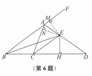 6. 如图,在 $ \triangle ABC $ 中,点 $ D $ 在边 $ BC $ 的延长线上, $ \angle ACB = 110^{\circ} $, $ \angle ABC $ 的平分线交 $ AD $ 于点 $ E $, 过点 $ E $ 作 $ EH \perp BD $, 垂足为 $ H $, 连接 $ BE $, $ CE $, 且 $ \angle CEH = 55^{\circ} $.