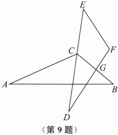 9. 如图,已知$\triangle ABC\cong\triangle DEF$,$CD$ 平分$\angle ACB$,若$\angle A = 24^{\circ}$,$\angle CGF = 84^{\circ}$,则$\angle E$ 的度数是(