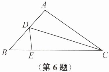 6. 如图,在△ABC中,点D,E分别在边AB,BC上,点A与点E关于直线CD对称。若AB= 7,AC= 9,BC= 12,则△DBE的周长为(