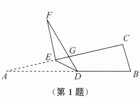 1. 如图,在△ABC中,点D,E分别在边AB,AC上,将△ADE沿DE折叠至△FDE的位置,点A的对应点为F。若∠A= 15°,∠BDF= 120°,则∠DEF的度数为(