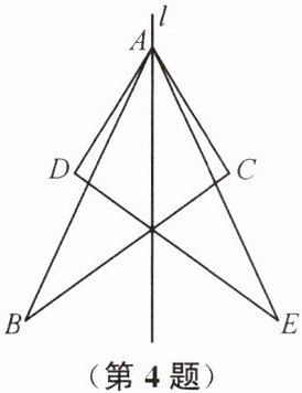 4. 如图,△ABC与△AED关于直线l对称,若AB= 2cm,∠C= 95°,则AE=