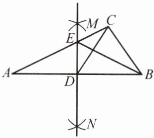 5. 如图,在$\triangle ABC$中,分别以点$A和点B$为圆心,相同的长(大于$\frac{1}{2}AB$)为半径作弧,两弧相交于点$M和点N$,作直线$MN交AB于点D$,交$AC于点E$,连接$BE$,$CD$。若$AC = 6$,$AB = 8$,$BC = 4$,则$\triangle BEC$的周长是(