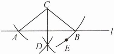 3. 如图,$C$,$E是直线l$两侧的点,以点$C$为圆心,$CE的长为半径画弧交直线l于A$,$B$两点,再分别以点$A$,$B$为圆心,大于$\frac{1}{2}AB$的长为半径画弧,两弧交于点$D$,连接$CA$,$CB$,$CD$,则下列结论不一定正确的是(