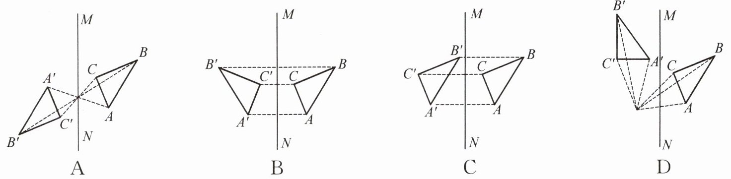 5. 下面是四位同学作$\triangle ABC关于直线MN$的轴对称图形,其中正确的是(