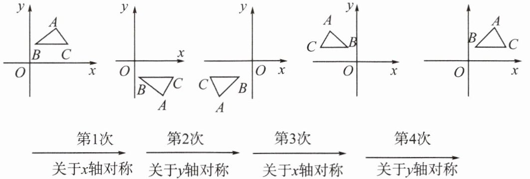 5. 如图,在平面直角坐标系中,对$\triangle ABC$进行循环往复的轴对称变换,已知原来点$A的坐标是(\sqrt{2},\sqrt{3})$,则经过第$2023次变换后所得的点A$的坐标是