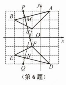 6. 在$6×6$的正方形网格中建立如图所示的平面直角坐标系,已知$\triangle ABC的顶点坐标分别为A(1,3)$,$B(-3,2)$,$C(-1,1)$.$\triangle DEF与\triangle ABC关于x$轴成轴对称(其中$D$,$E$,$F分别是A$,$B$,$C$的对应点).