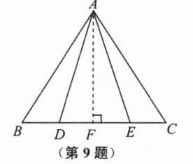 9. 如图,点 $D$,$E$ 在$\triangle ABC$ 的边 $BC$ 上,$AD = AE$,$AB = AC$. 求证:$BD = EC$.